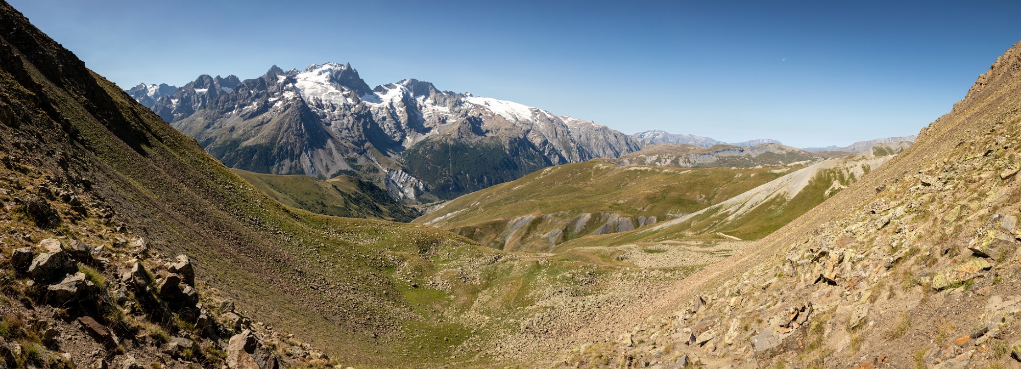 Views towards the Ecrins from the Cruq des Aiguilles